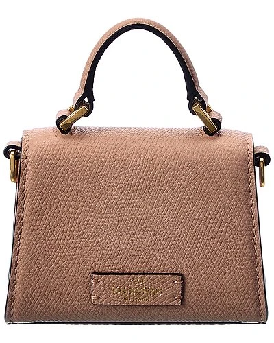 - VLogo Mini Leather Shoulder Bag in pink leather and gold-tone hardware with VLogo accent and chain accent at strap