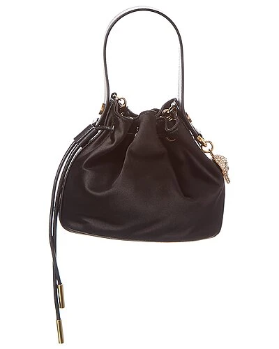 - Mini Satin & Leather Bucket Bag in black satin and leather and gold-tone hardware with crystal-embellished Medusa head logo accent