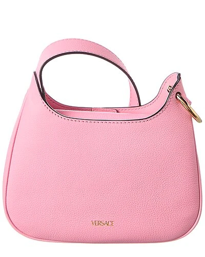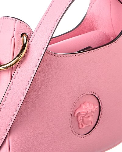 - La Medusa Small Leather Hobo Bag in pink leather with gold-tone hardware and Medusa head logo accent